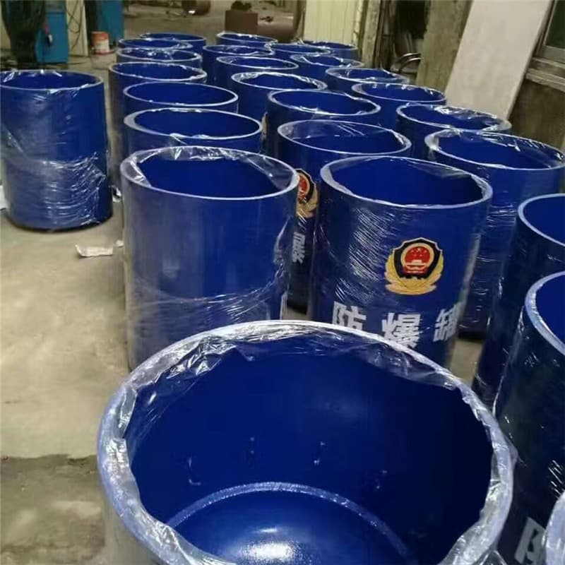 防爆罐材質(zhì):內(nèi)、外層采用16mm高強(qiáng)度、耐沖擊碳素鋼板,罐體與罐底雙面焊接,罐內(nèi)安裝有掛鉤,罐底外部焊接有2條使用10mm鋼板制作的加強(qiáng)盤,安裝有4個(gè)滾輪。并符合GB700-1988標(biāo)準(zhǔn)中所采用的碳素鋼板有關(guān)要求。